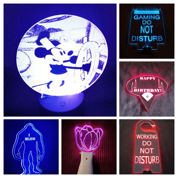 Nightlights, personalized pictures, keychains, door hangers, wands, lit keychains, and so much more! Utilizing base and push button LED lights, we offer a wide variety of products.